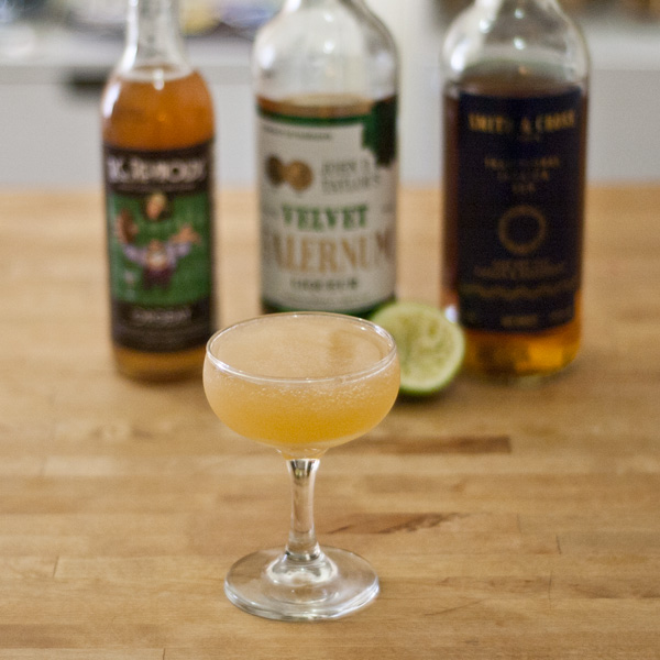 Now, the thing about Orgeats is that they all taste differently. BG Reynolds’ Orgeat is a tad toasty and not quite as sweet as some of the other ones I’ve tasted. You will probably have to adjust the ratios of the drink depending on the Orgeat you have. For example, I was working on this drink with KJ Williams at Flatiron Lounge and they use a homemade Orgeat. We totally had to toss the Falernum and decrease the Lime because their Orgeat was sweeter than mine.