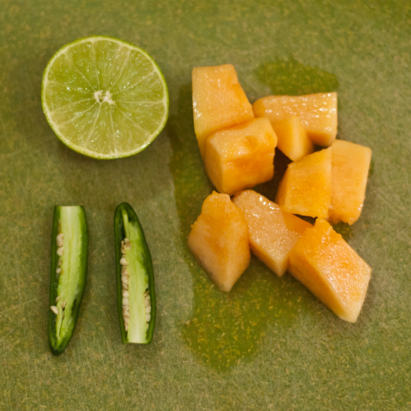 A week ago, I went to the Farmer’s Market during the peak of Pepper season and got my hands on some picante goodness in the form of a Serrano Chile Pepper. I also picked up one of the largest Cantaloupe’s I’ve ever seen. Having just returned from the SF Bay Area, and having had a delicious Cantaloupe Margarita at Tacolicious, it was time to get to werk.