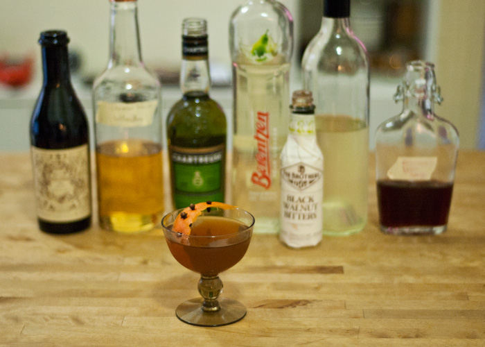 Combine ingredients over ice and stirrrrrrrrrrrr. Strain into chilled coupe and garnish.