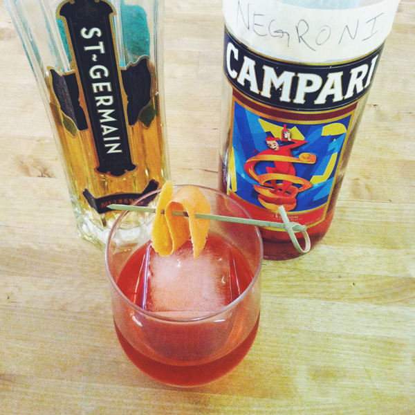 Myself and my mentor Angel Negrín hold to the firm belief that #EveryWeekIsNegroniWeek. I created this cocktail as a series of drinks for Negroni Week and love how the smoothness of St-Germain mellows out the bitterness of Campari. I like to keep Negroni bottled* and ready to go so that I can use it to mix with cocktails or sip it whenever I so desire. The bonus of keeping it bottled is that the Gin, Sweet Vermouth and Campari will blend together more and more with each passing day!